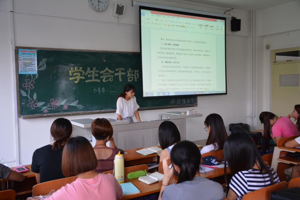 9月8日下午,外国语学院团总支在博学楼310教室组织开展了学生会干部培训会,2016届院学生会全体干部20余人参加了此次培训会。
