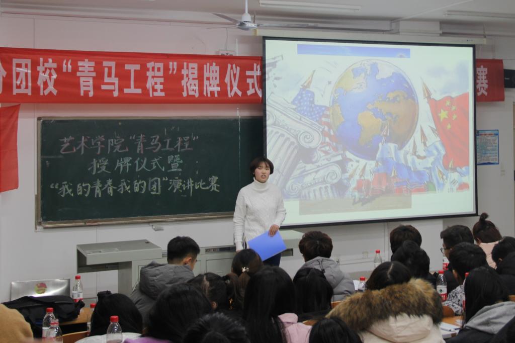2017年12月14日,艺术学院在博文楼108召开分团校“青年马克思主义培养工程”授牌仪式暨“我的青春我的团”演讲比赛,学校团委、艺术学院团总支老师莅临现场,团总支学生会所有成员、17级学生300余人参与此次授牌仪式及比赛。